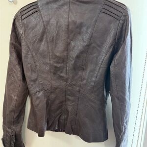 Danier Brown Leather Jacket with Stand-Up Collar and Fitted Silhouette