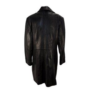 Danier Canada Black Genuine Leather Long Trench Coat, Jacket, Double zip