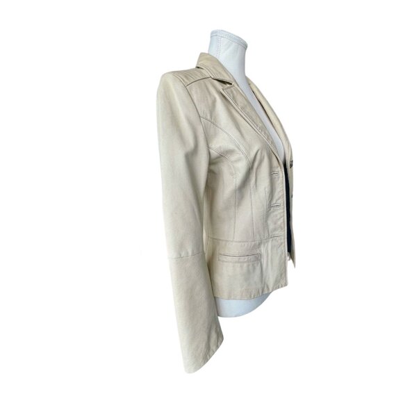 Danier Cream Fitted Leather Blazer Jacket