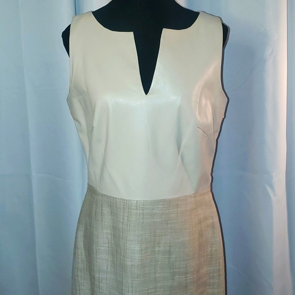 Gorgeous Danier dress genuine leather and 70% cotton 30% linen. side zipper and Beige/cream in colour Size 8 EUC