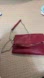 This chic red crossbody bag boasts a minimalist design, enhanced by a striking silver chain strap. Its compact size and elegant style make it a versatile accessory for both casual and dressy occasions. Like new.