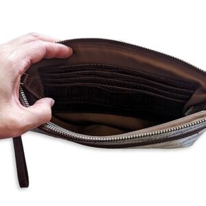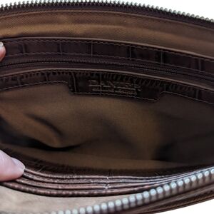 Danier Leather Croc Embossed Clutch with Shoulder Strap Brown