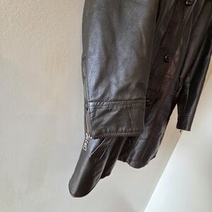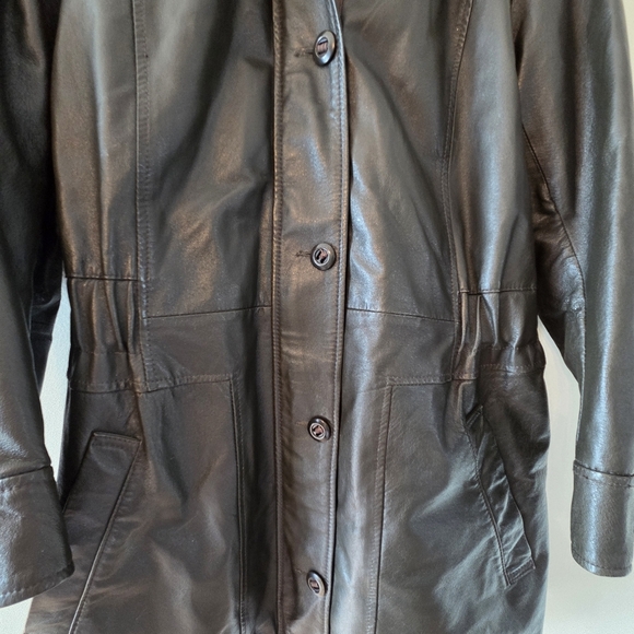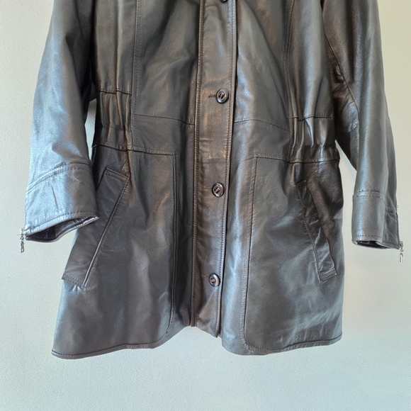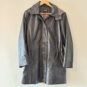 Danier Leather Fall Winter Dark Green Boho Moto Hooded Jacket Trench Coat Size L