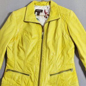 Danier Leather Jacket women's size S yellow colour moto style