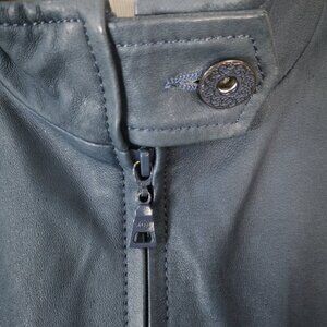 Danier Leather Ladies Size Large Lined Windsor Blue Full Zip Leather Jacket