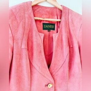 Danier Leather - Suede Jacket & Pencil Skirt Set - Bright Pink - Size 6