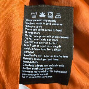 While this jacket is in great condition, there are a few barely noticeable imperfections: a small pen stroke stain and a small scratch in the leather—both of which do not take away from its overall charm and style.