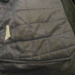Please see pictures as there is wear on this item including: on the pockets, some on the seams, darkness on the inside lining jacket corner, a bit on the cuffs and baks of sleeves