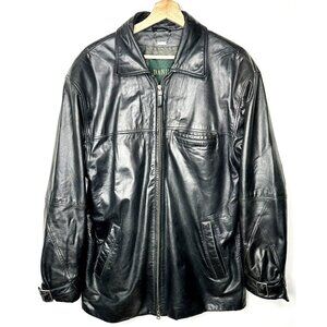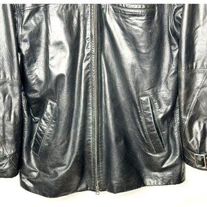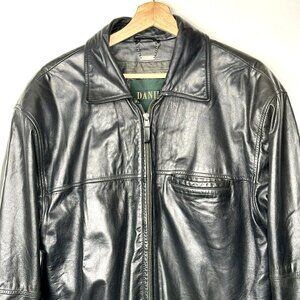 Danier Mens Genuine Leather Jacket VTG 90s Full Zip Buckle Cuffs Black Medium