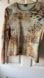 Stylish long sleeve top with artistic patterns. Features a blend of cream, brown, and gold tones. Ideal for a chic look.