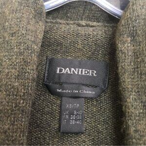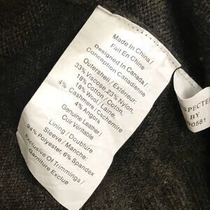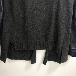 Danier Open Front Cardigan Sweater Leather Sleeves Slits Cashmere Wool Blend Top
