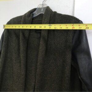 Danier Open Front Cardigan Sweater Leather Sleeves Slits Cashmere Wool Blend