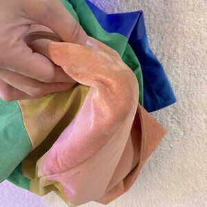 Danier Rainbow Stripe Suede Cropped Button Up Short Sleeve Jacket L