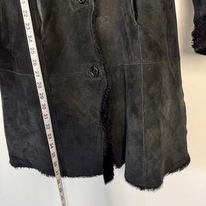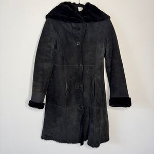 Danier Shearling Jacket Genuine Leather Black Coat Plush Knee Length Sz XS Flaws
