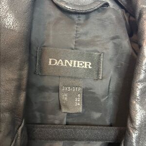 Danier | Women's Black Leather Zip Up Jacket PTP 16in flat lay - XS-Small