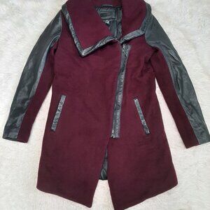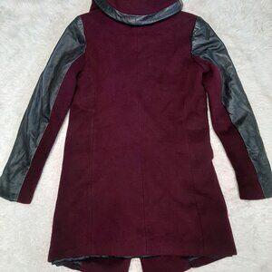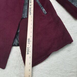 Danier Women's Burgundy Wool Blend Leather Trim Full Zip Coat 3M Thinsulation XS
