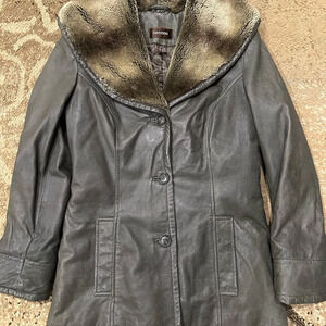 Danier XS insulated leather coat wit beautiful faux trim in great used condition