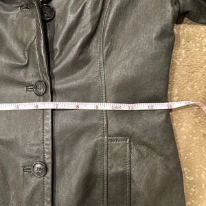 Danier XS lined/insulated green leather coat in great used condition. Faux fir trim- very nice and warm coat