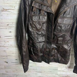 Danier brown leather jacket size xs made in Canada