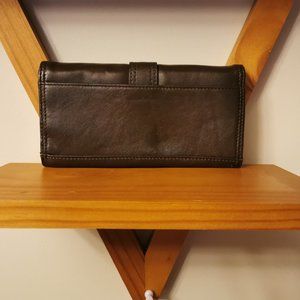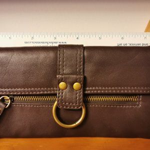 Danier genuine leather purse /wallet brown very soft leather w buckle & zipper