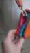 Danier leather cross body bag in orange pink and blue. The leather is soft and beautiful