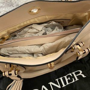 Danier handbag, pure leather, beige,cream with god buckle, everything in a excellent condition,shoulder bag, cross bag, handbag, good for night and day use. Spacious bag, with compartment.