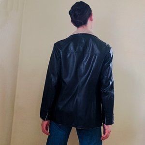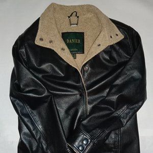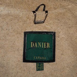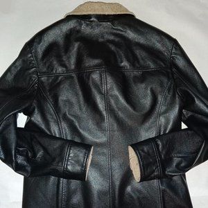 Beautiful leather coat with sherpa lining. Vintage but still looks new! It sizes like an xs (for reference I am a small, i'm 5'9.5'' and for me it's unconfortable when buttoned all the way up).