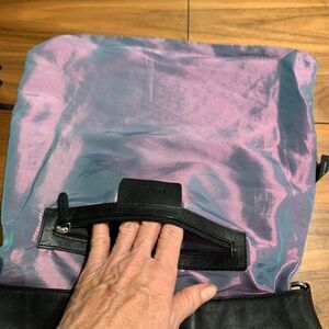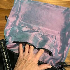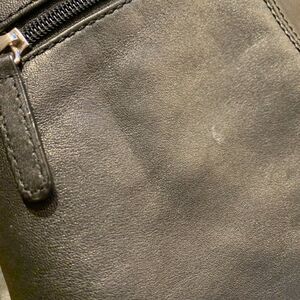 From Danier the leather experts. Black all leather handbag in excellent used condition. Soft hobo type construction, minimalist design, fun multi strand leather tassel. Stamped Danier with no leather tag but the feel and look is absolutely of real leather. One exterior zippered pocket on one face to hold essentials with an additional drop down zippered flap covered compartment on the other side with envelops for cards, phone etc. Interior is pristine with slotted compartment for phone and wallet and a second zippered pocket for safe keeping valuables. Main interior compartment has a top zippered closure for security. Hand strap has functioning zipper detail. As with all leather there are some irregularities in the leather shown in photo, that do not affect use or appearance and barely noticeable. The top zipper stitching has one stitch undone, shown in photo. The quintessential all purpose sassy black handbag for play or work. Add a few completing pieces from Our Closet (some suggestions shown all listed and priced separately), build a bundle and a new look. Fresh and Fun from Lemon Squeezy Shop🍋
