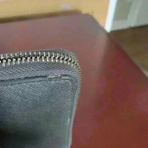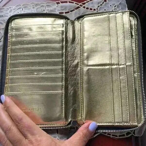 Dark grey, gold inside with 16 card slots and inside zipper with lots of space. Great condition. Had a small wear shown on last picture. Back to school