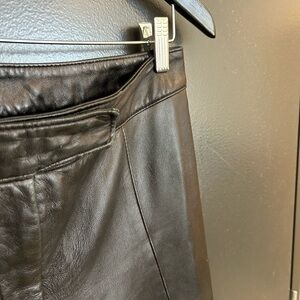 Danier size 8 leather pants- minor wear but nothing significant- adds to the charm of this incredibly well made classic bootcut with a wider leg pants!!! Sleek black leather pants. Perfect for a festivals/stampede and forever a classic staple!!