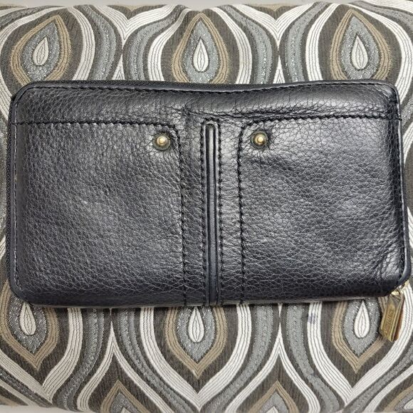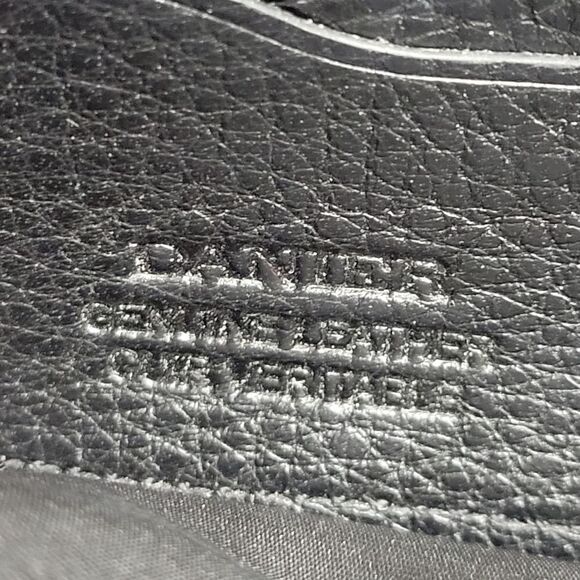 Excellent preloved condition Danier black leather wallet with gold tone hardware. See pics for full details. Wallet measures approximately 1 x 4.5 x 7.5"