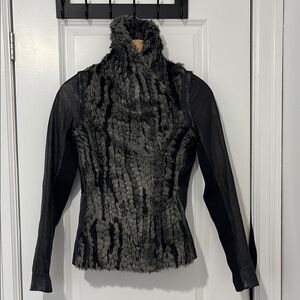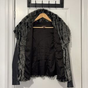 Danier Faux Fur & Leather Jacket w Removable Sleeves