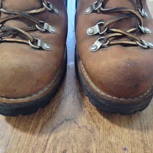 Very well made, fashionable hiking boots worn for approx 20 times. Scuff marks here and there, mostly on the toes, the soles have very little wear. Laces replaced with leather.