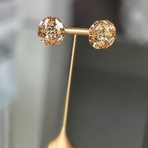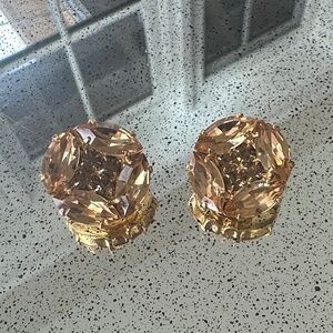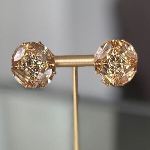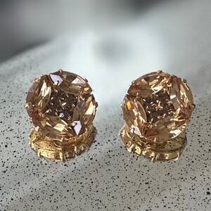 Absolutely stunning Danny Pollak Light Colorado Topaz and Topaz Swarovski button pierced earrings. Nothing shines better than Swarovski. Lighter topaz on the outside, darker topaz on the inside. Swarovski has stopped selling to independent designers so beauties like these will be harder to find going forward - especially at such an amazing price!