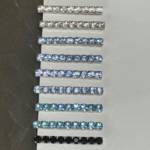 Select one, or bundle with other crystal bobby pin listings in my closet for a unique-to-you color mix! They look fantastic stacked in the hair, one side of the head or both! Other listings offer different colours, including crystal clear, light sapphire, blue topaz, and jet black. Photos of other colours shown for information.