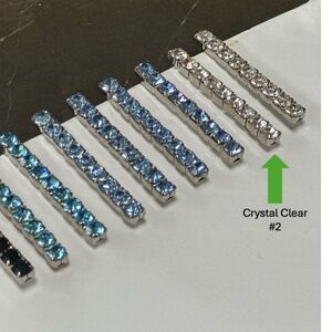 Select one, or bundle with other crystal bobby pin listings in my closet for a unique-to-you color mix! They look fantastic stacked in the hair, one side of the head or both! Other listings offer different colours, including crystal clear, light sapphire, blue topaz, and jet black. Photos of other colours shown for information.