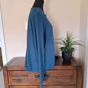 Danskin Active Top Ribbed Women's Large Blue Long Sleeved Crewneck Tee