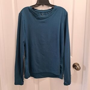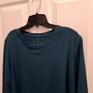 Danskin Active Top Ribbed Women's Large Blue Long Sleeved Crewneck Tee