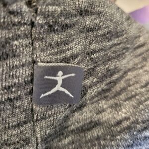 Very comfortable cotton polyester knit Pullover Sweater with scoop neck and side pockets in black grey mix long sleeves XL pit to pit 21" sleeves 23" length 27"