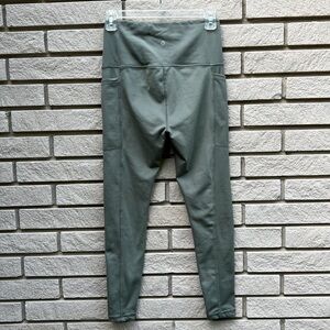 Ultra soft workout leggings by Danskin. Colour is a lovely sage green. These leggings feature 2 side hip pockets, are high rise and cropped length.