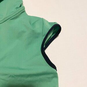 Danskin Now Womens Size Small Green Pullover Short Cap Sleeve Vneck Hoodie