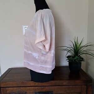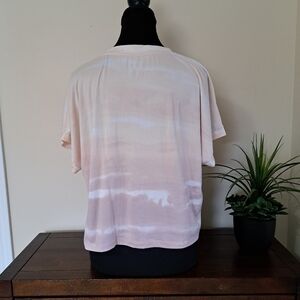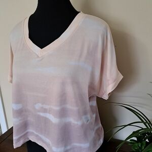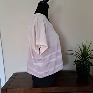 Danskin Short Sleeved Tee Pink Striped Tie Dye Top Women's Large Activewear