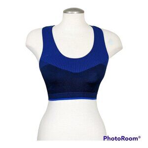 Danskin Sports Bra Womens Size Med Seamless Racerback Blue Geometric Print Gym