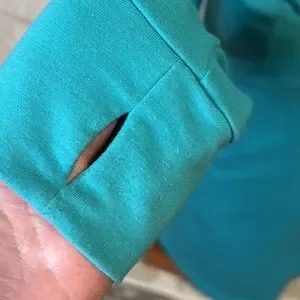 Soft material ladies jacket with thumb holes