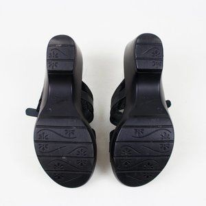 Stylish sandals in a black shade with a contrasting lizard print. Perfect for dressing up or keeping it casual. With double straps and adjustable buckle fasteners, you can find the right fit. The chunky platform is sturdy and adds a little extra height. Perfect for summer. Excellent condition.