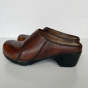 Dansko Leather Slip On Closed-Toe Block Heel Casual Mules Sandals Brown 37 : Used and in good used condition