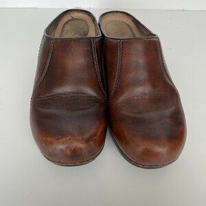 Dansko Leather Slip On Closed-Toe Block Heel Casual Mules Sandals Brown 37