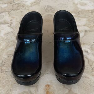 In excellent preowned condition, gorgeous Dansko purple iridescent leather clogs