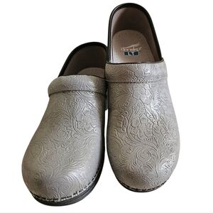 Dansko Shoes Womens 38 LT Pro Wedge Casual Clogs Gray Leather Comfort Slip On