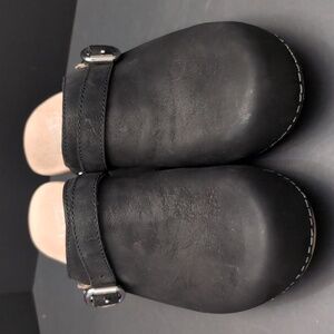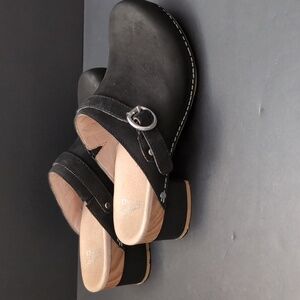 Dansko Woman's Black Marty Milled Nubuck Leather Clogs,Size 38 .
